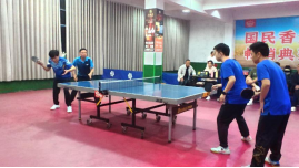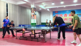随后,协会成员前往乒乓球活动中心,与县乒乓球协会代表队展开友谊交流赛。比赛中,双方选手秉持“友谊第一、比赛第二”的原则,展开了激烈而友好的角逐。南华大学队员凭借着系统训练功底和战术配合,展现出较强的进攻能力;县乒协队员则凭借扎实的基本功和娴熟的球技,多次打出精彩回合。尤其县代表队员张湘南、徐国齐在男子双打中以灵活的线路控制,顽强拼搏的精神,赢得现场阵阵掌声。